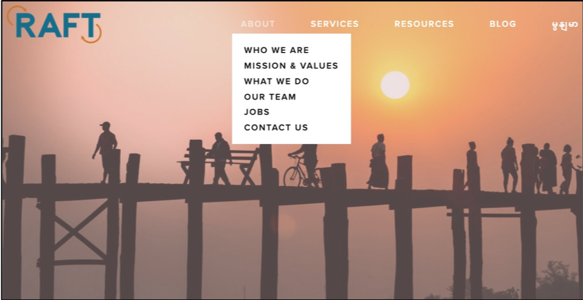 In 2020, as the Communications Consultant for RAFT Myanmar, I led the development and launch of the RAFT website, along with facilitating the design of new, visually pleasing communications products and managing their social media presence.